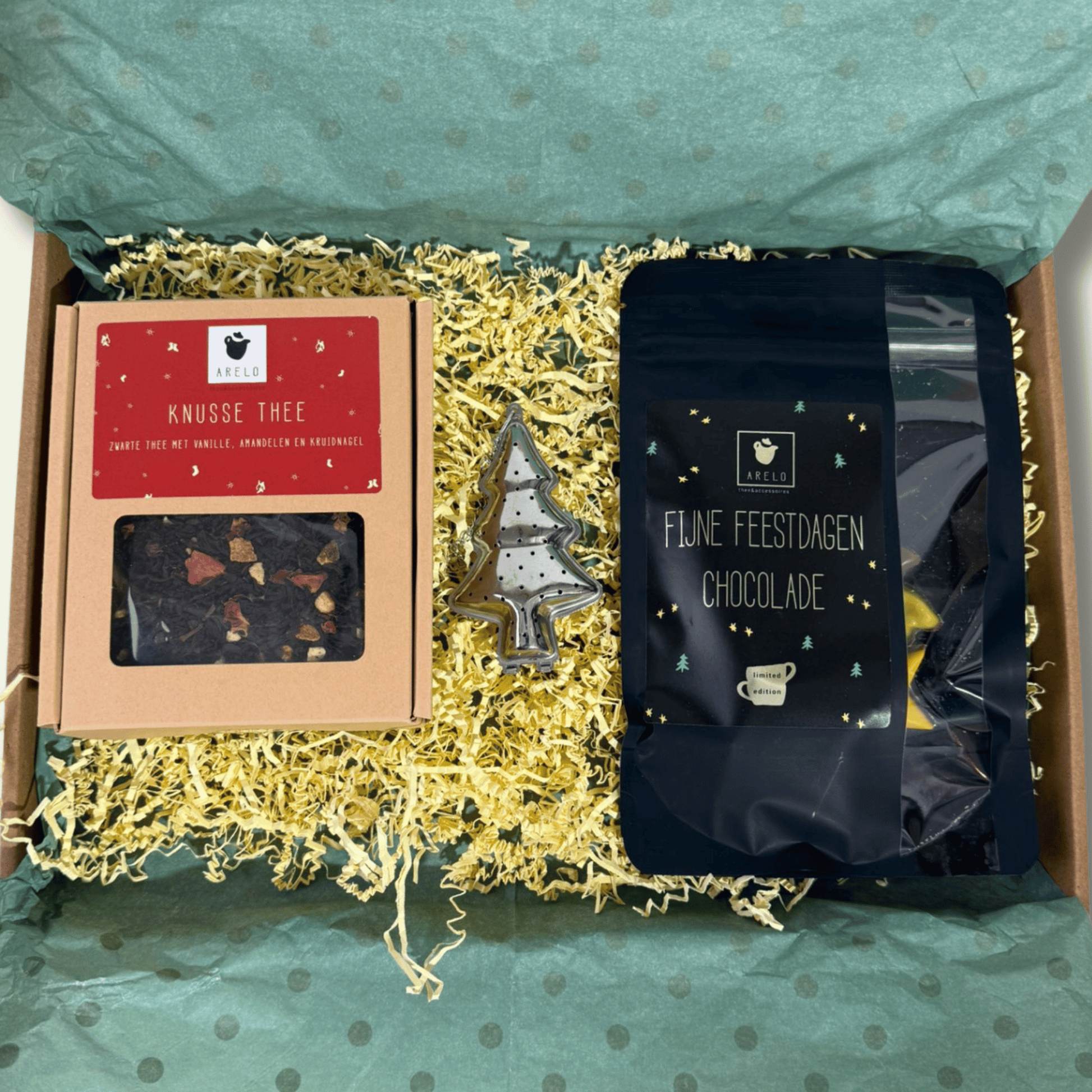 Breng warmte en gezelligheid bij iemand thuis deze feestdagen! 🎄 Knusse kruidige thee, heerlijke feestchocolade en een vrolijk kerstboomp-thee-ei maken dit pakket helemaal compleet.