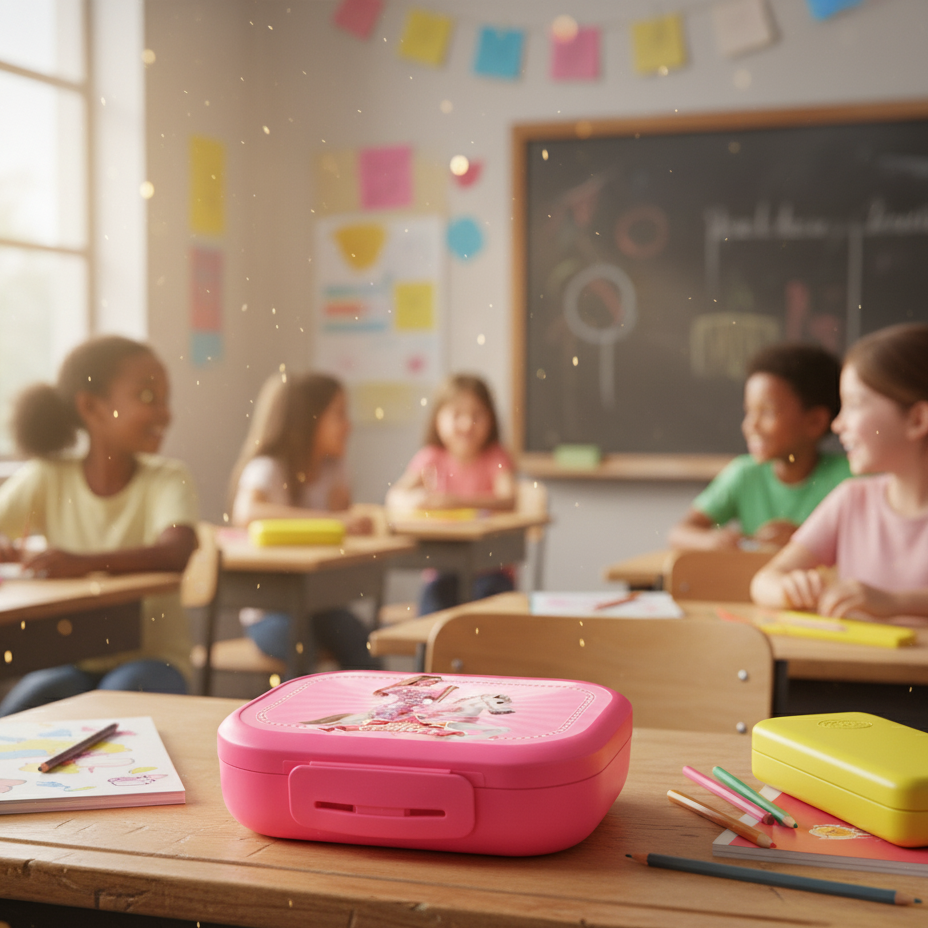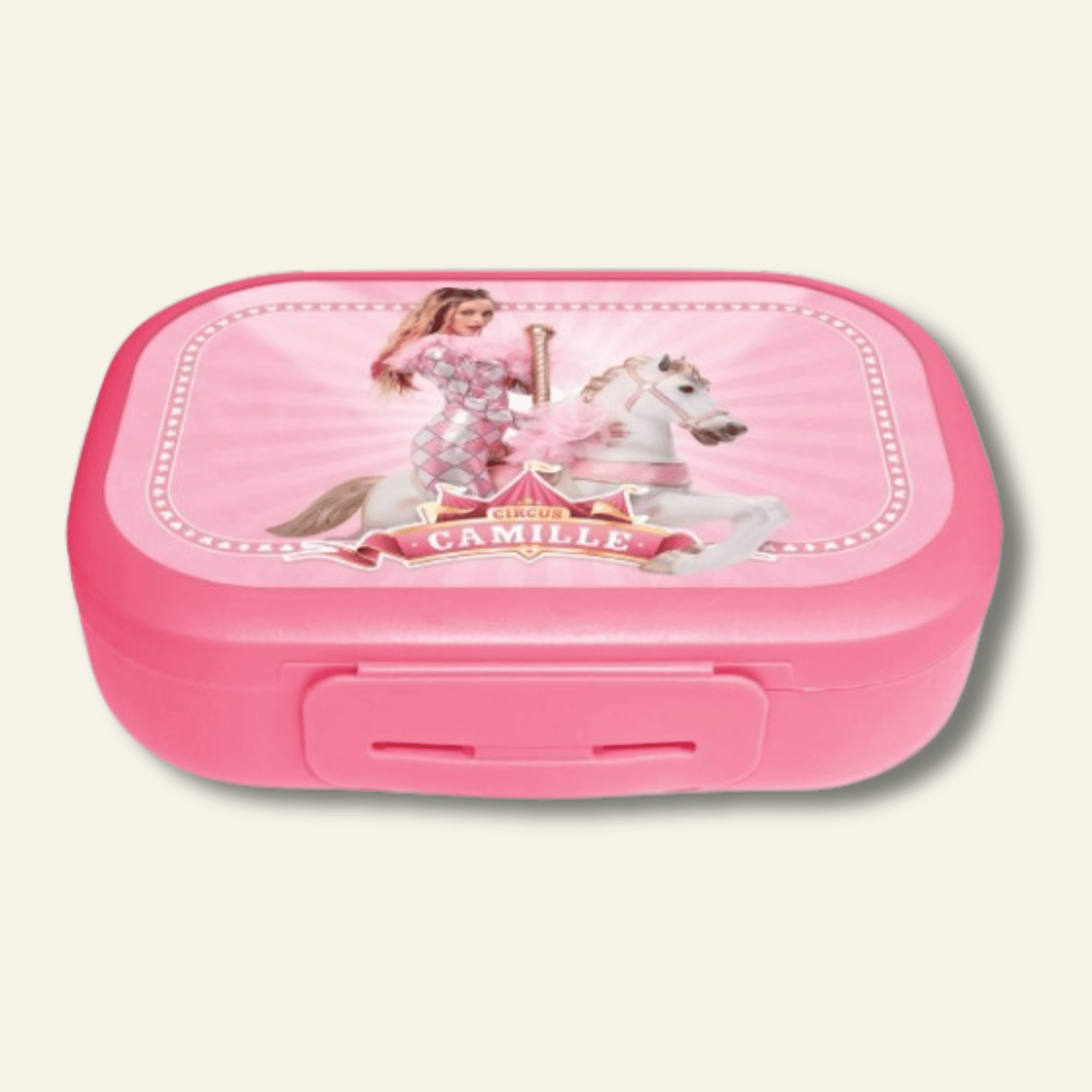 Met deze Camille Brooddoos – Circus wordt elke lunch een moment van plezier en kleur. De stevige doos houdt brood, fruit of snacks veilig en vers, terwijl het vrolijke ontwerp jouw favoriete Camille-karakter altijd dichtbij houdt.