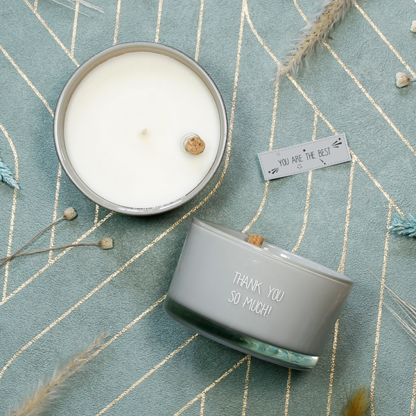 Soms volstaat een gewoon “dank je wel” niet. 💛 Met deze bijzondere Flessenpost Geurkaars Thank You So Much geef je een warm gebaar vol betekenis, verpakt in geur, licht en een vleugje magie.
