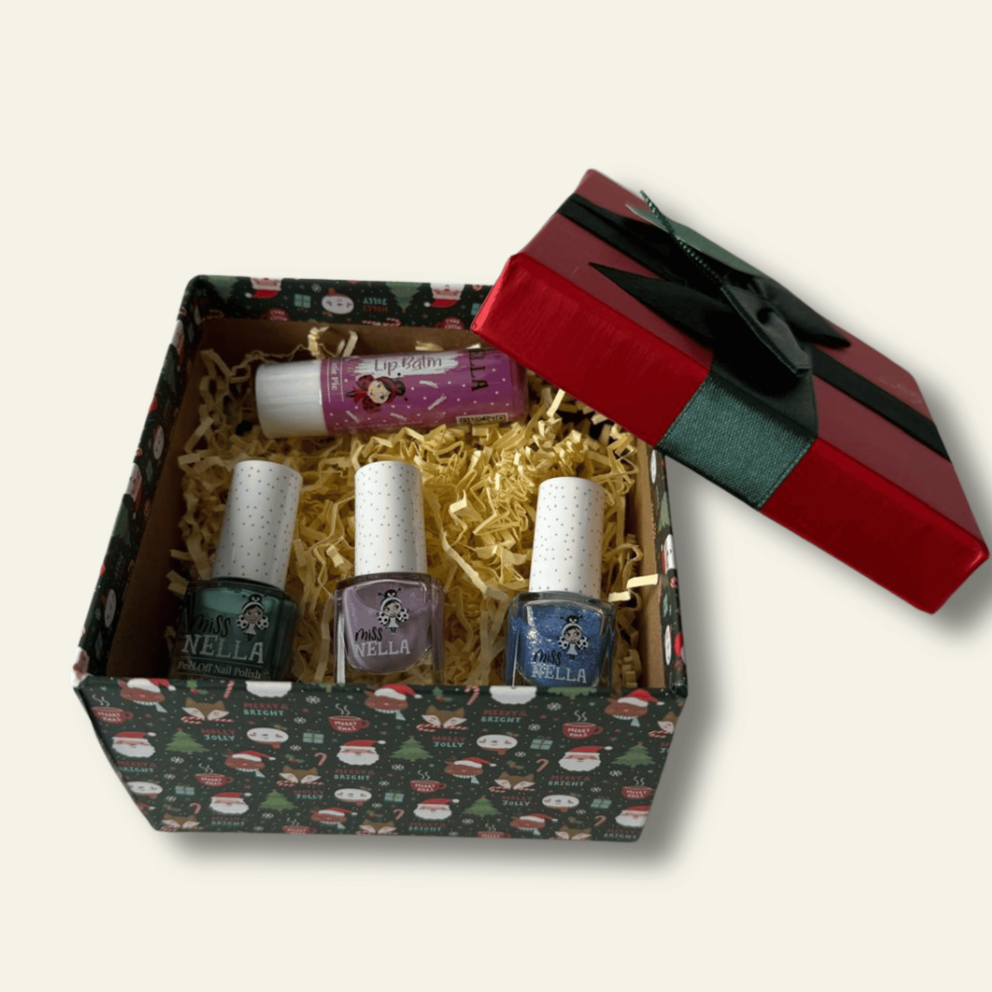 Verras een kleine beauty queen met dit feestelijke Miss Nella kerstverwenpakket. Drie vrolijke nagellakjes en een zachte lippenbalsem, veilig, hypoallergeen én kant-en-klaar verpakt in een betoverend kerstdoosje.