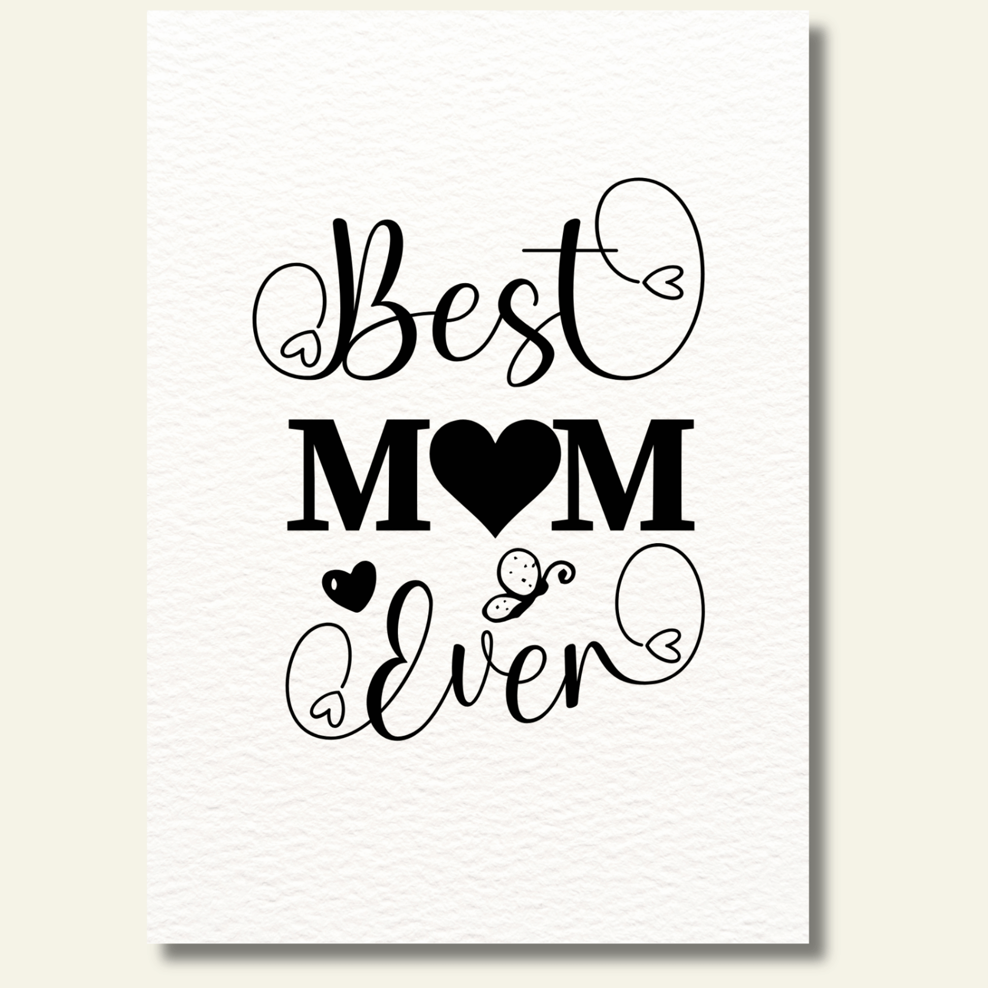 Het kaartje “Best Mom Ever”, met een hartje in de plaats van de O, brengt een glimlach op mama’s gezicht. Het ontwerp is modern, speels en vol liefde, perfect voor Moederdag, haar verjaardag of gewoon zomaar.