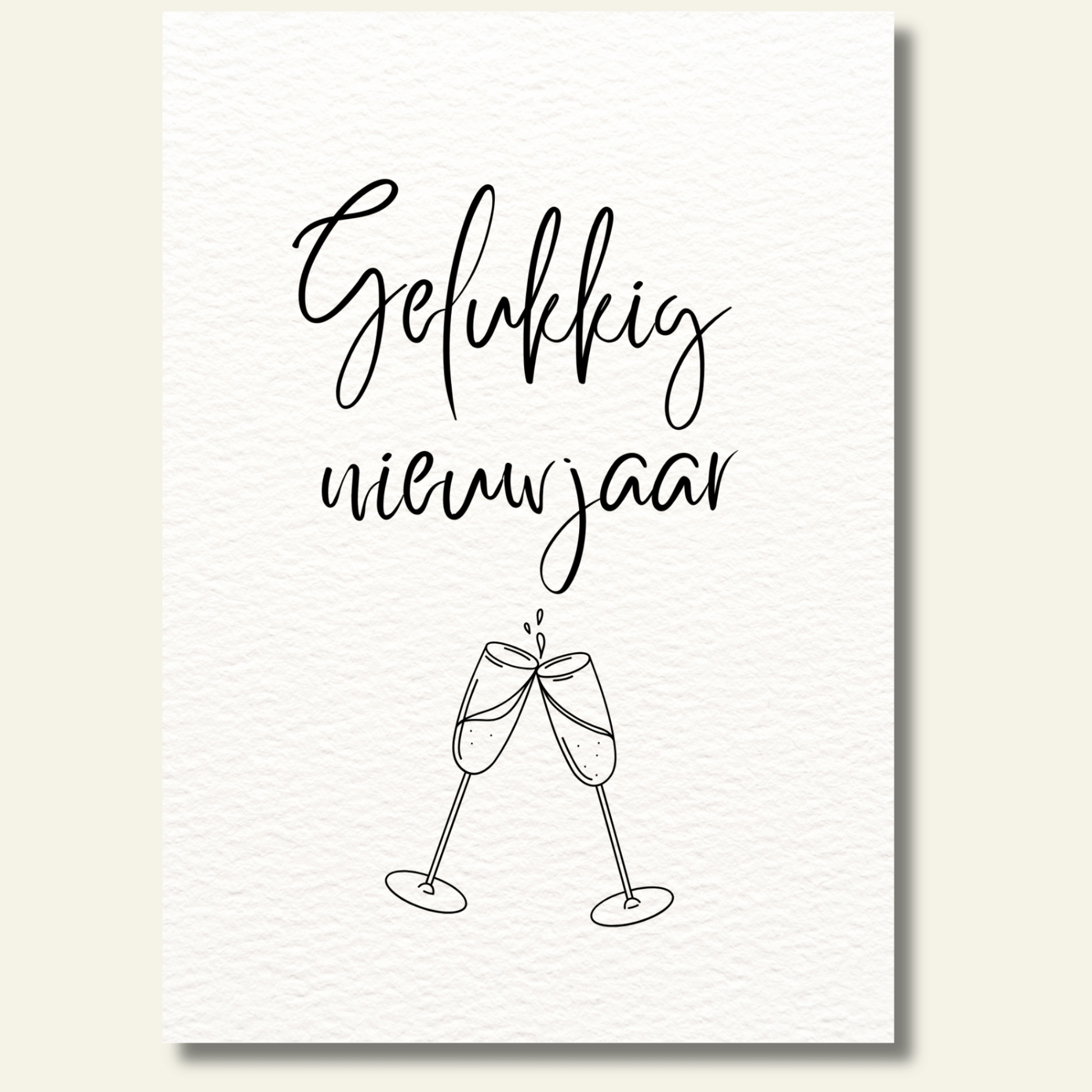 Het kaartje “Gelukkig Nieuwjaar” met champagneglazen onder de tekst is perfect om een sprankelend nieuw begin te vieren. Combineer met een klein cadeautje of brievenbusverrassing voor een compleet moment. Gedrukt op stevig papier en met liefde ontworpen door ’t Kleinigheidje.