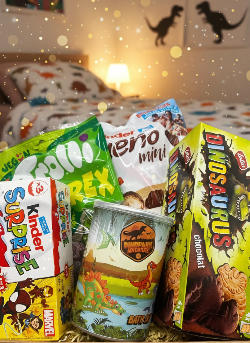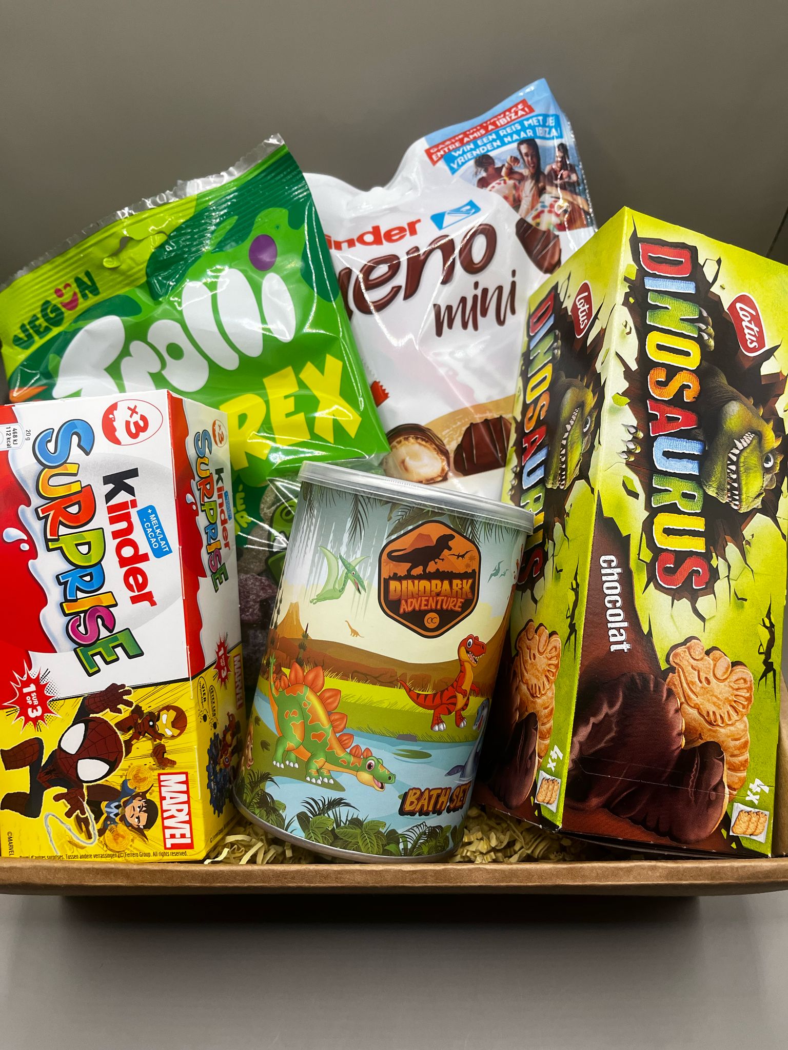 Op zoek naar een cadeau waar kleine dinofans dolblij van worden? Dit dino-verwenpakket zit boordevol lekkers én een leuke badset in dino-thema, klaar om elke kleine dinoheld te verrassen!